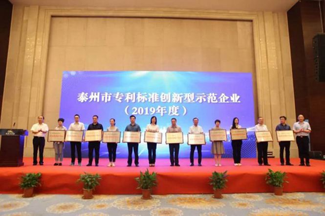 公司荣获《泰州市专利标准创新型示范企业》(2019年度)